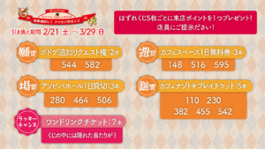 番号がなかった方もラッキーチャンス!くじのなかには隠れた当たりがあるので、ぜひはずれくじもお店にもってきてください!また、はずれくじは5枚で… - 2月の営業&イベント