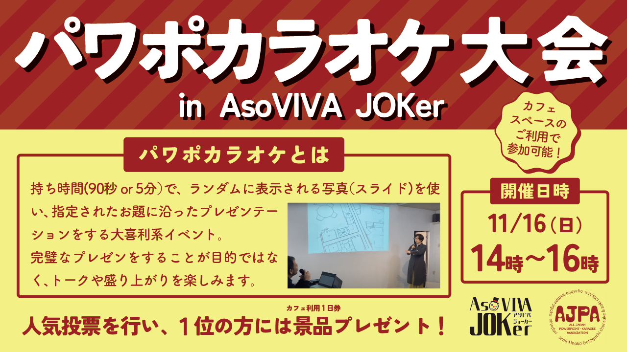 瞬発力やアドリブ力を試せる「パワポカラオケ大会 in AsoVIVA JOKer」を今月も開催!