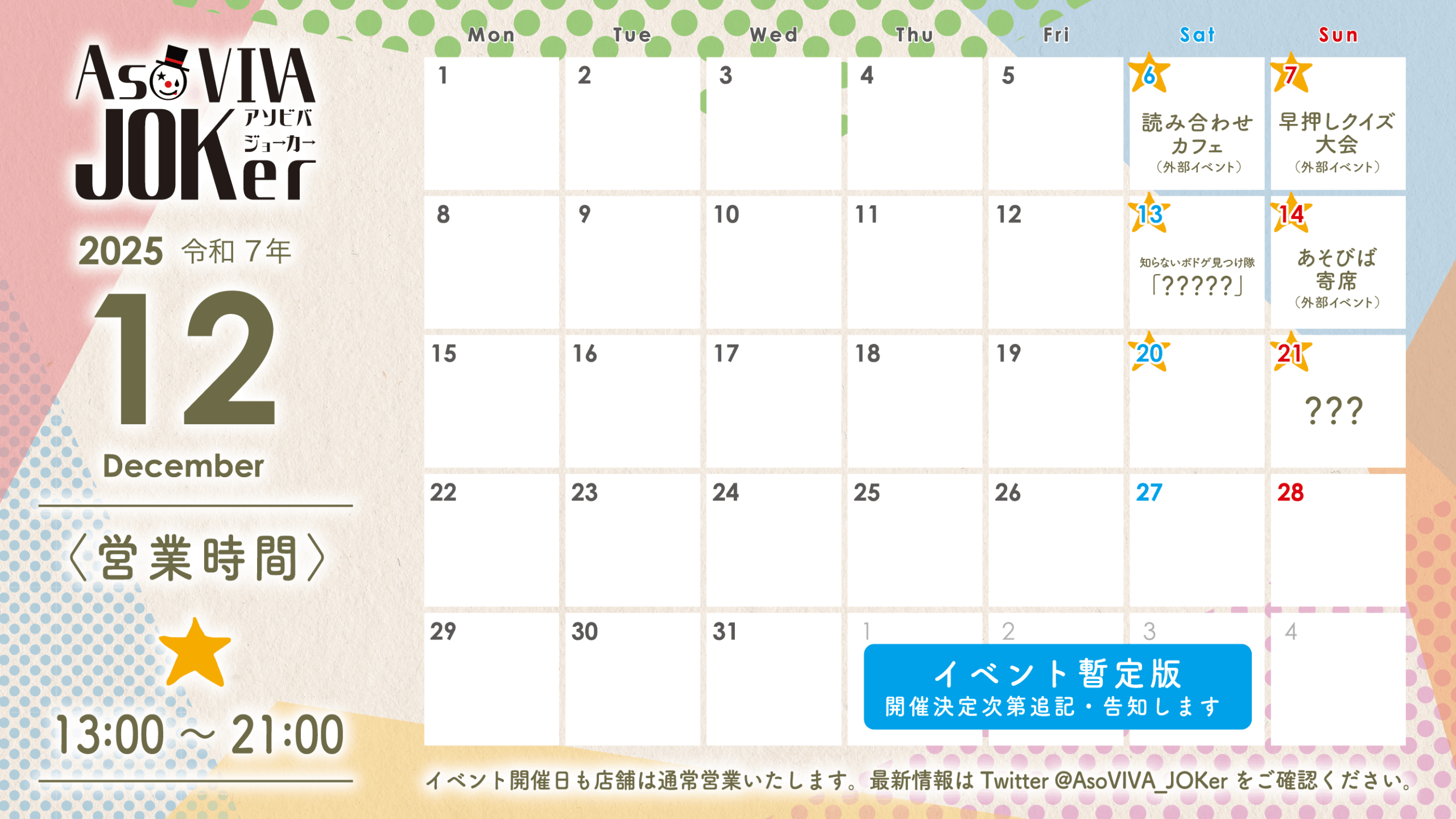 イベント予定は別途お知らせになりますが、少し先の予定を立てるのにお役立てください!
