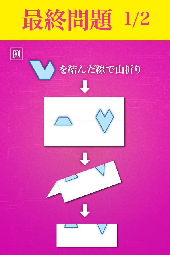 問題冊子をよく見ると、[歯]と[車]のイラストが見つかります。それらを結んだ線で山折りしましょう。