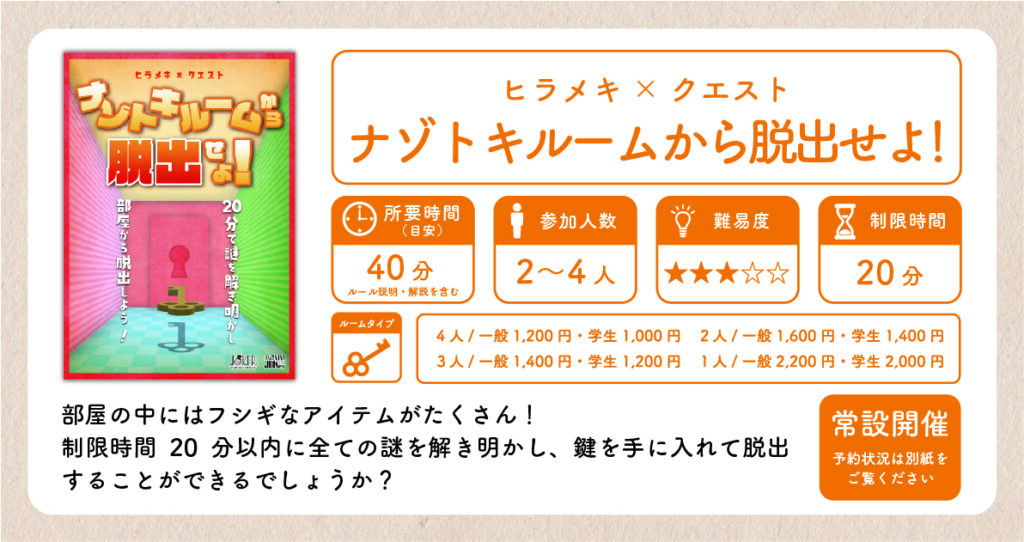 謎解き&ボードゲームカフェ「AsoVIVA JOKer」で遊べる謎解きゲームです。